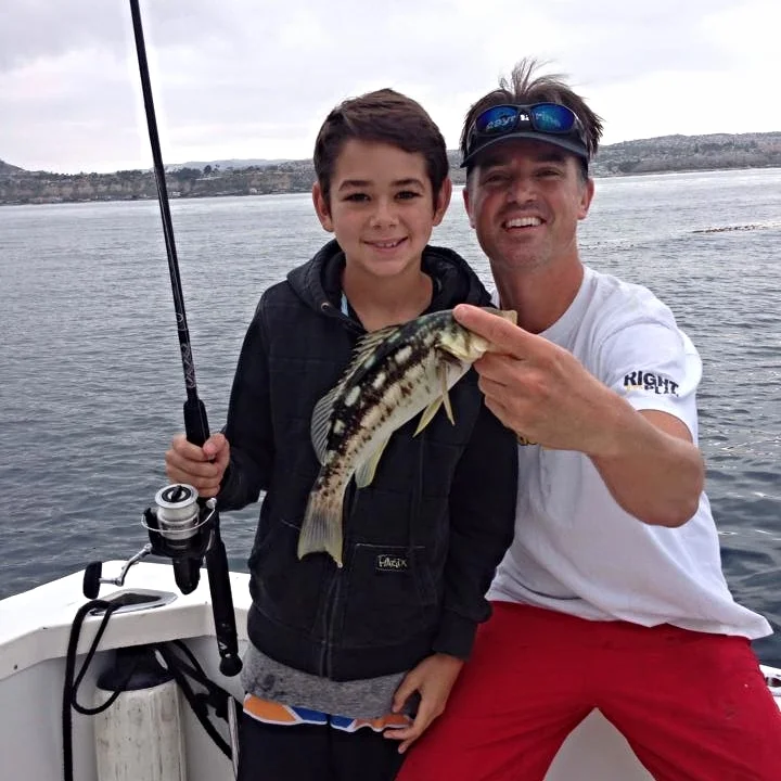 The weather's been a bit rough so far this winter. El Nino is a bit of a start, then a stop, then some wind, some big waves, and hopefully more rain. Never the less, we made it out on New Years Day for some local fishing action. We had a great group of local boys from Dana Point on board. The water was a bit bumpy and the fish were a bit sleepy. But we managed a few rod benders for the kids. We scratched at some #sandbass and #calicos for the morning.